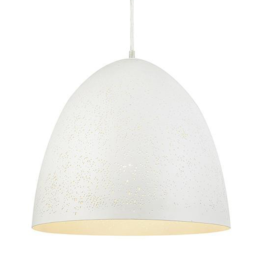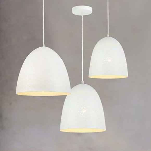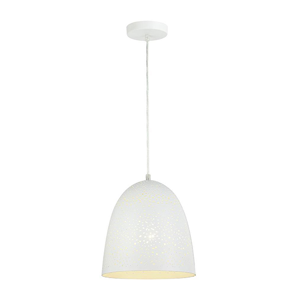 Luminaires suspendus, Mini SuspendusPixie est un luminaire suspendu en métal perforé, disponible en fini blanc et trois tailles, il est fourni avec 8 pieds de fil.