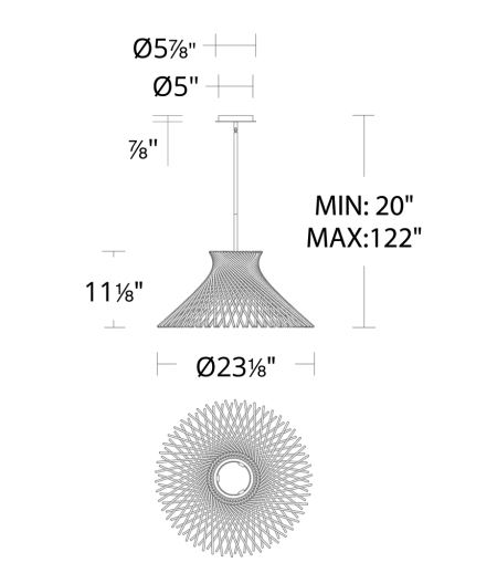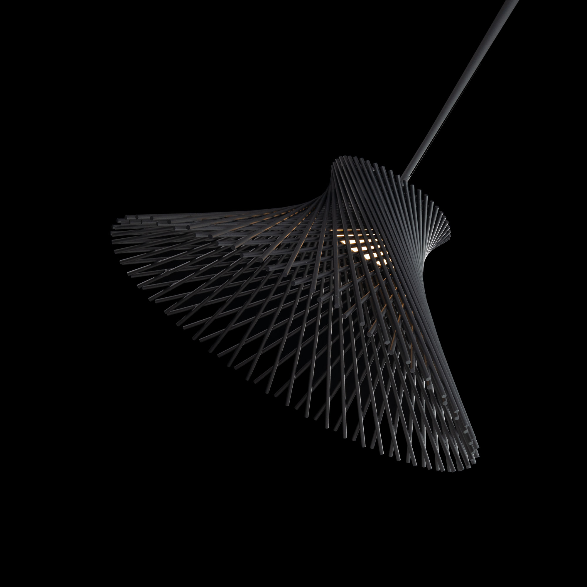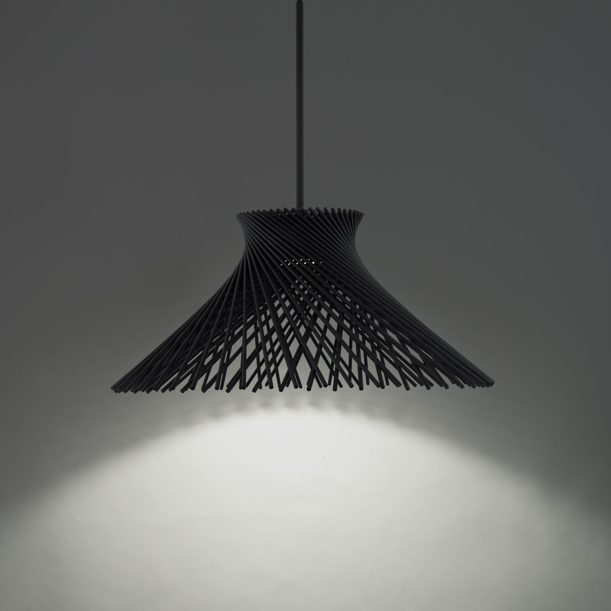 Zenya est une  suspension DEL minimaliste inspirée du style Japandi, arborant un abat-jour en treillis métallique noir ou or qui abrite une source lumineuse DEL, son diffuseur en acritique mince et givré adoucis la lumière et procure une ambiance agréable et chaleureuse.