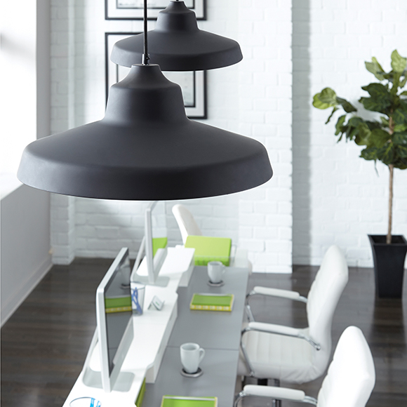 Luminaires suspendusZevo est une suspension de style industriel épurée et dénudée de toute artifice, le métal filé mat lui donne l’apparence d’une texture plus douce et soyeuse pour contraster avec sont style et amener un ambiance plus chaleureuse.